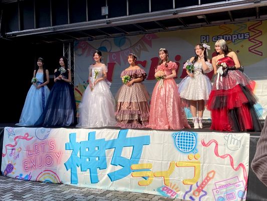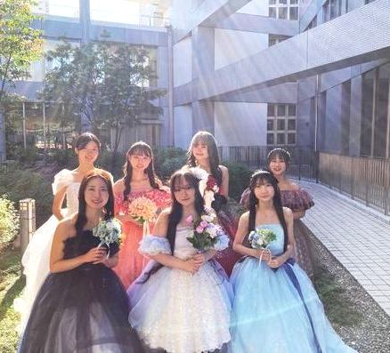 2025年11月15日・土曜日、学園祭において、総合生活学科 被服製作ゼミの2年生7名がウエディングドレスショーを行いました。
