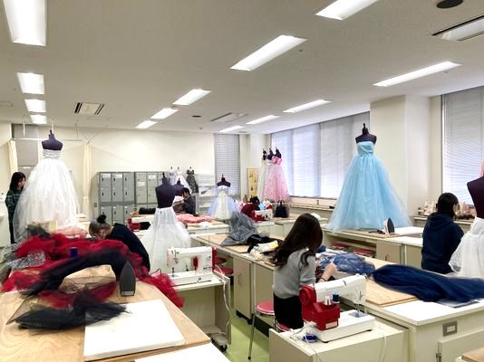 こだわりのドレスはカラーも様々で、デザインや布地選びにも個性が表れています。12月中も製作を続け、スカートをふくらませたり装飾を加えたりして理想のドレスに仕上げていきます。