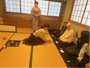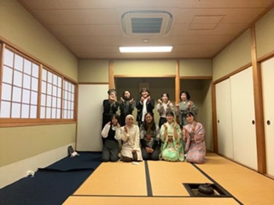 インドネシア ウダヤナ大学看護学部 留学生と先生5名との交流茶会を開催いたしました。茶道部からは3名が参加し、茶室での炉薄茶点前にて呈茶をさしあげました。茶会の後は、看護や福祉の話に花が咲き、お互いの趣味やファッションの話題からアニメやゲームなどの世界共通の話題へと、話が尽きることが無く楽しく深い交流となりました。