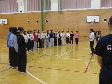 兵庫県警察本部の講師の方から、危険を察知するために周囲へ意識を向けること、相手に立ち向かうのではなく自身が安全にその場を離れることが大切であることを教えていただきました。また、護身動作が、相手にとってどのような身体的・心理的な効果があるかを考えながら実践しました。