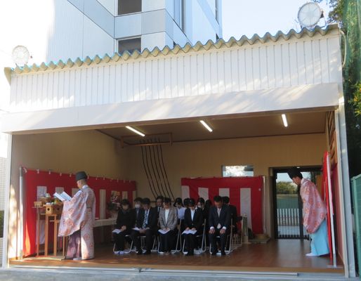 ポートアイランドキャンパスに新しい弓道場が完成し、関係者の皆様にご出席いただき、令和7年12月20日(土)竣工式が厳かに執り行われました。 式では、弓道部員による奉射が披露され、場内には一層の緊張感と敬意が満ち、節目にふさわしい荘重な雰囲気に包まれました。
