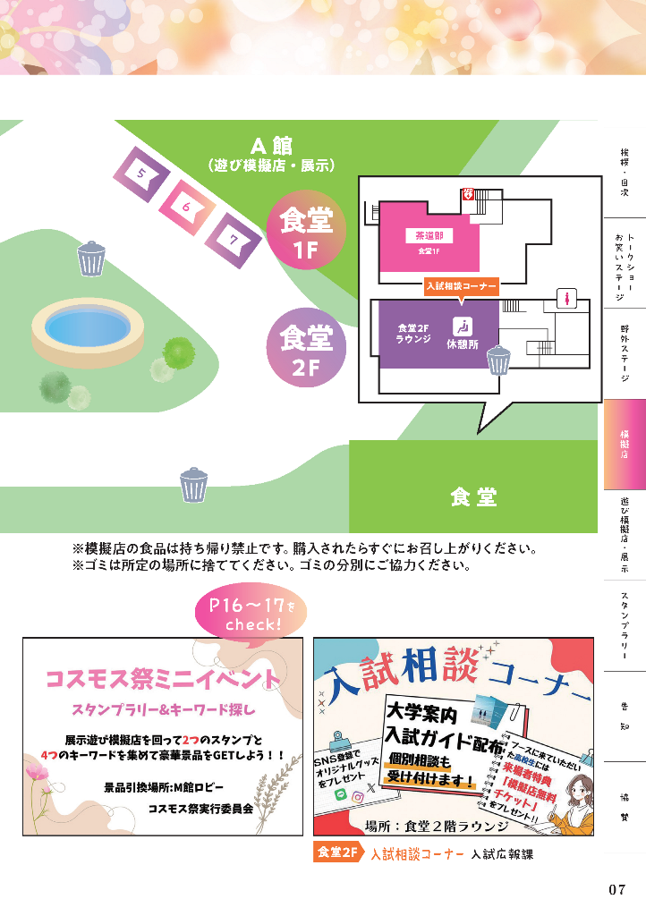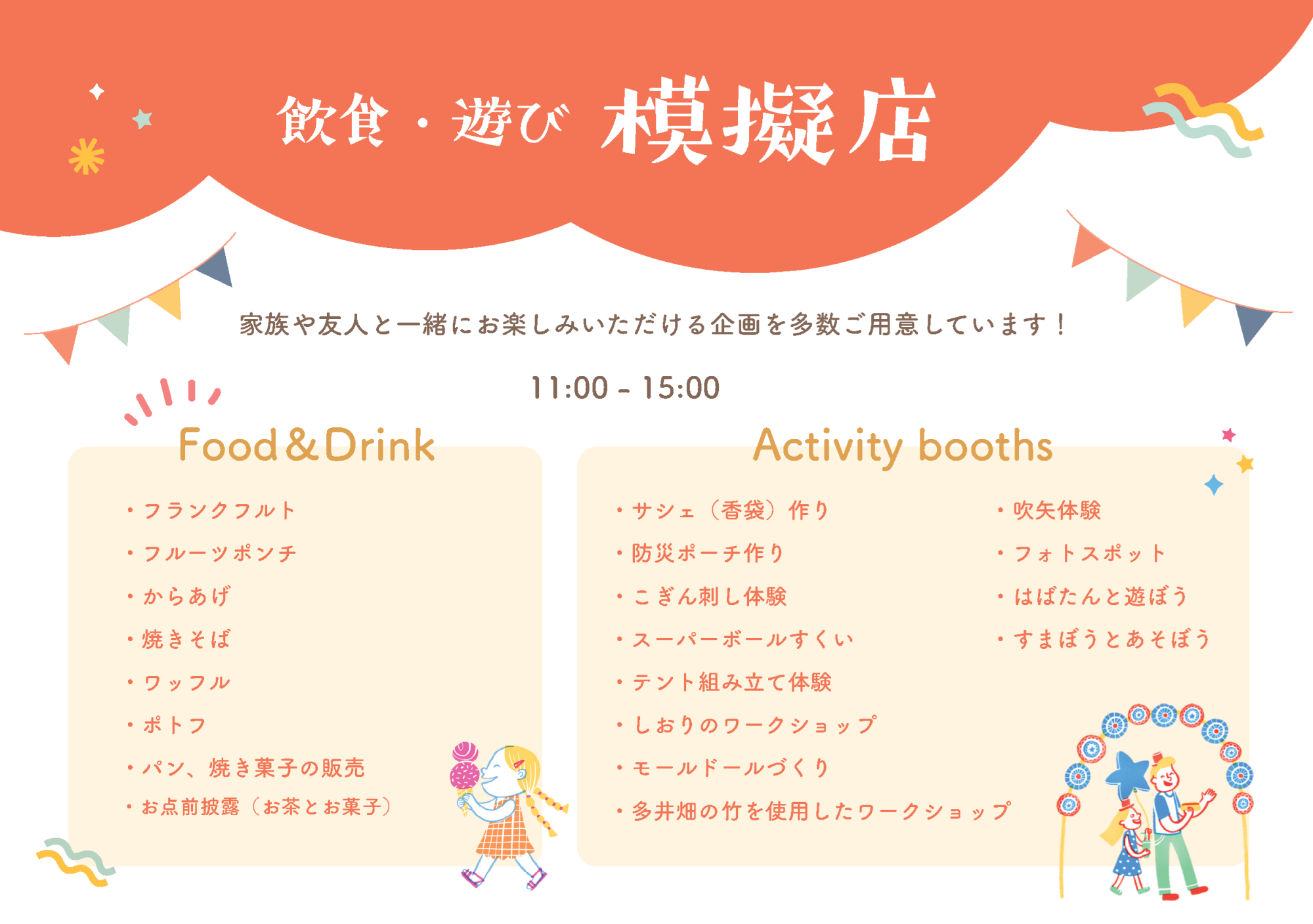 • 当日は食べ物模擬店があるため、アレルギーをお持ちの方は事前にご確認の上、ご自身で責任を持って飲食いただきますようお願いいたします。
