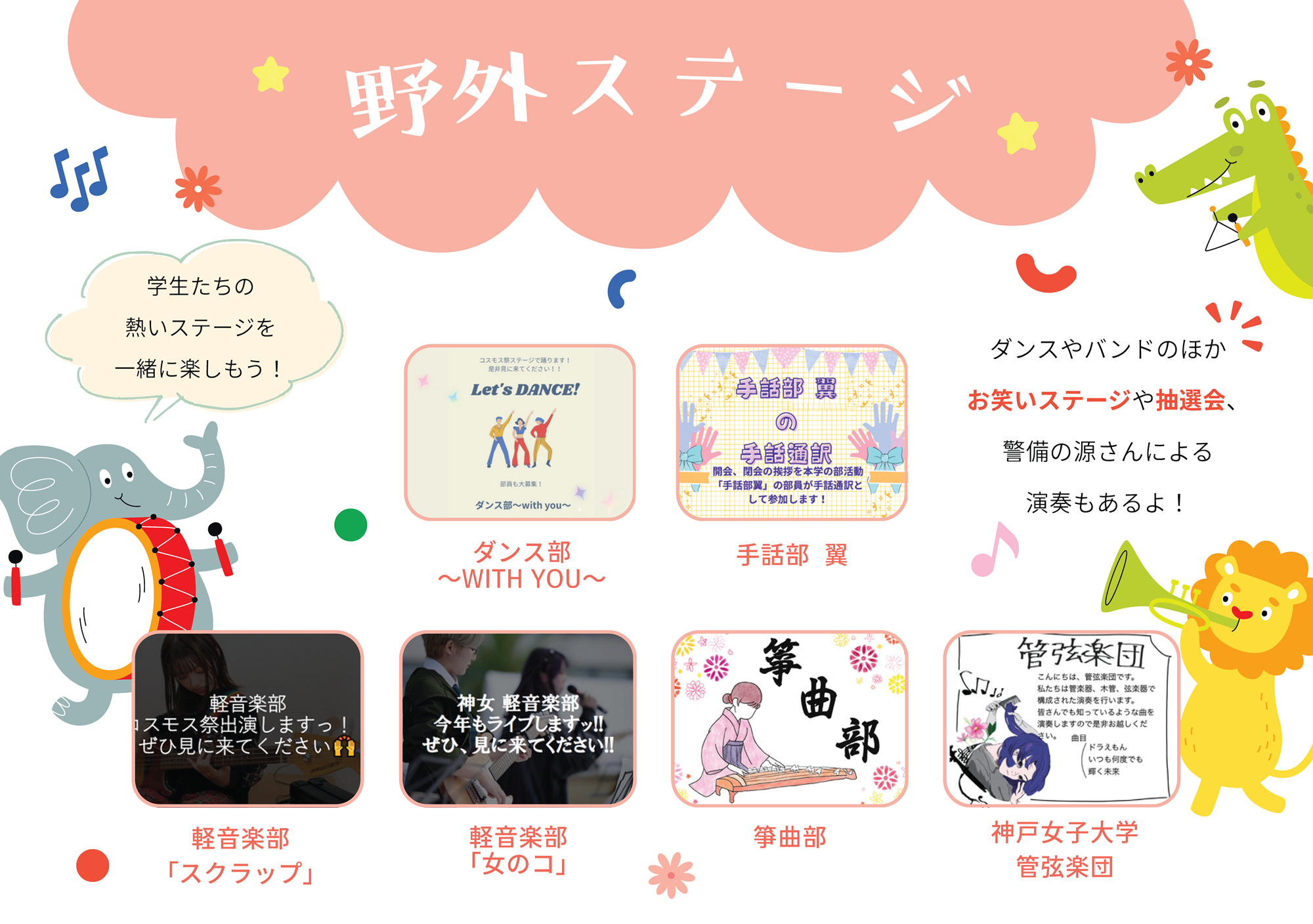 「コスモス祭」は、神戸女子大学須磨キャンパスで開催する大学祭です。