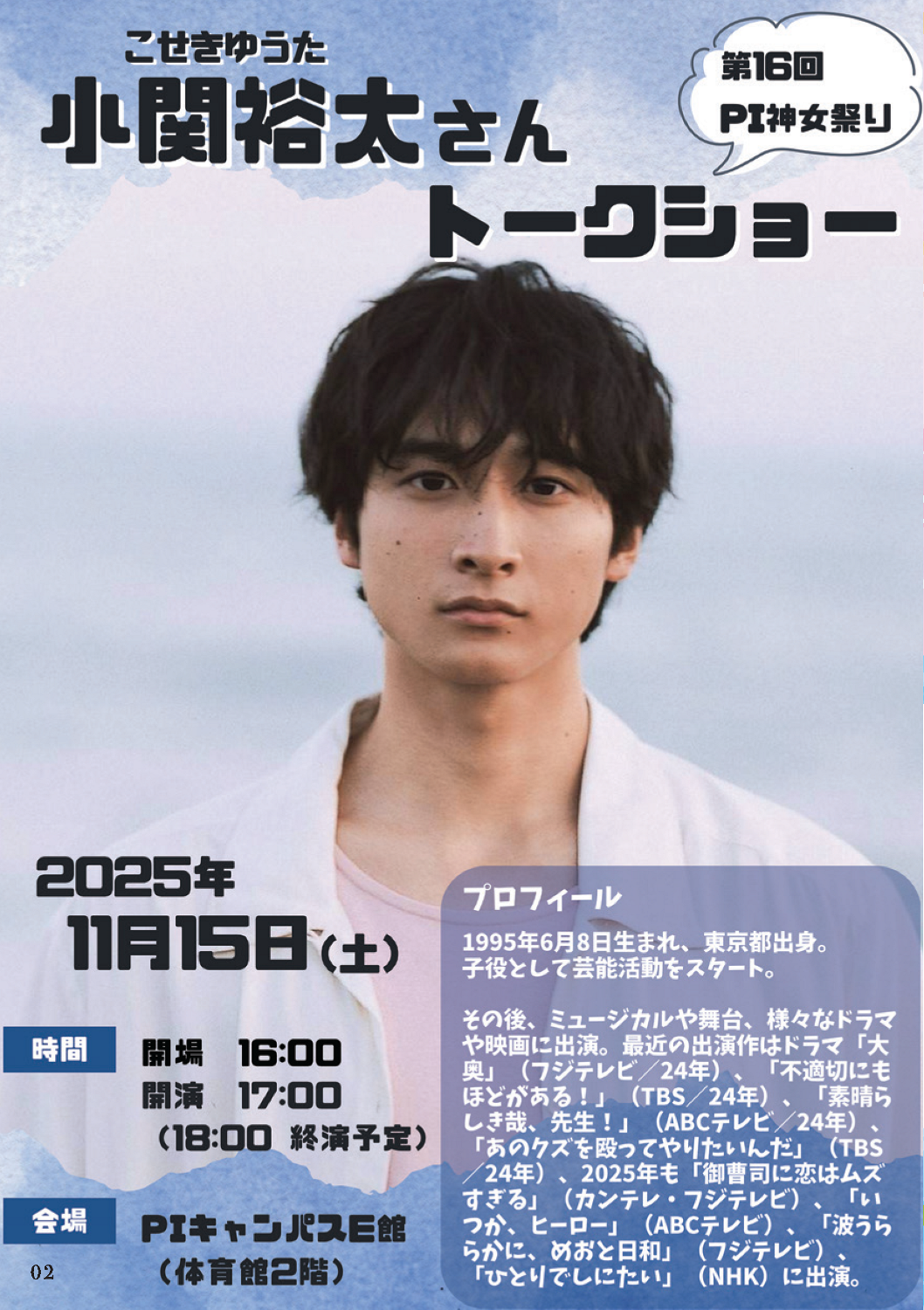 2025年度のPI神女祭りのトークショーゲストは小関こせき 裕太ゆうたさんに決定しました。