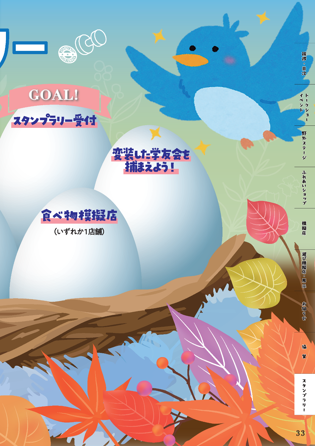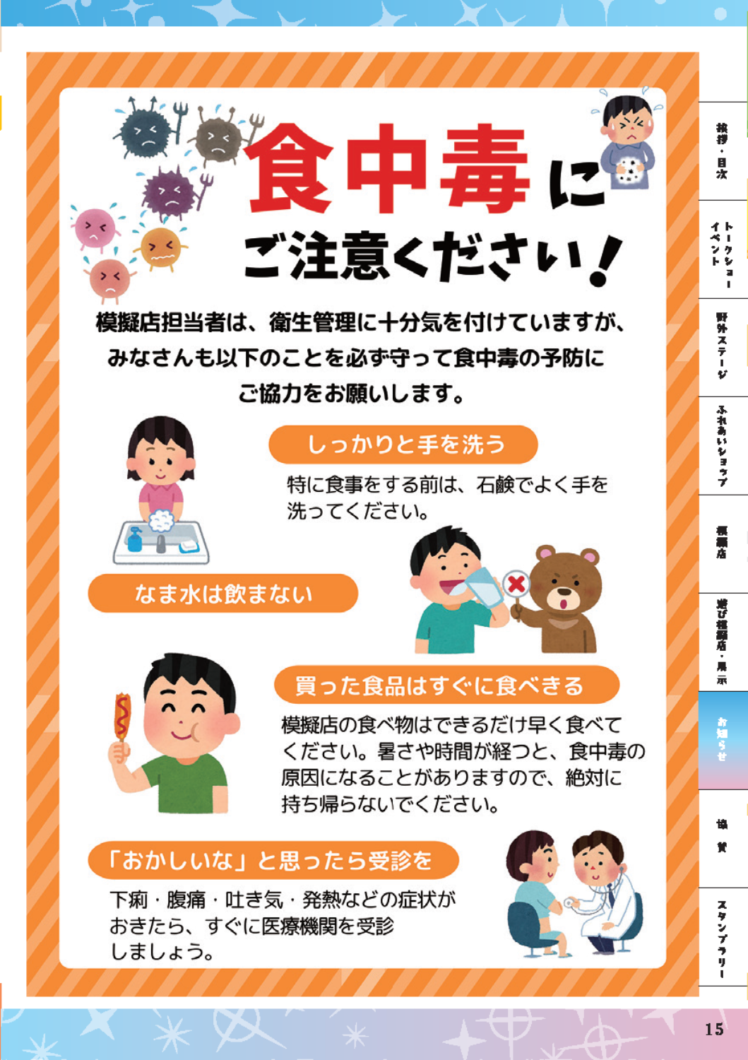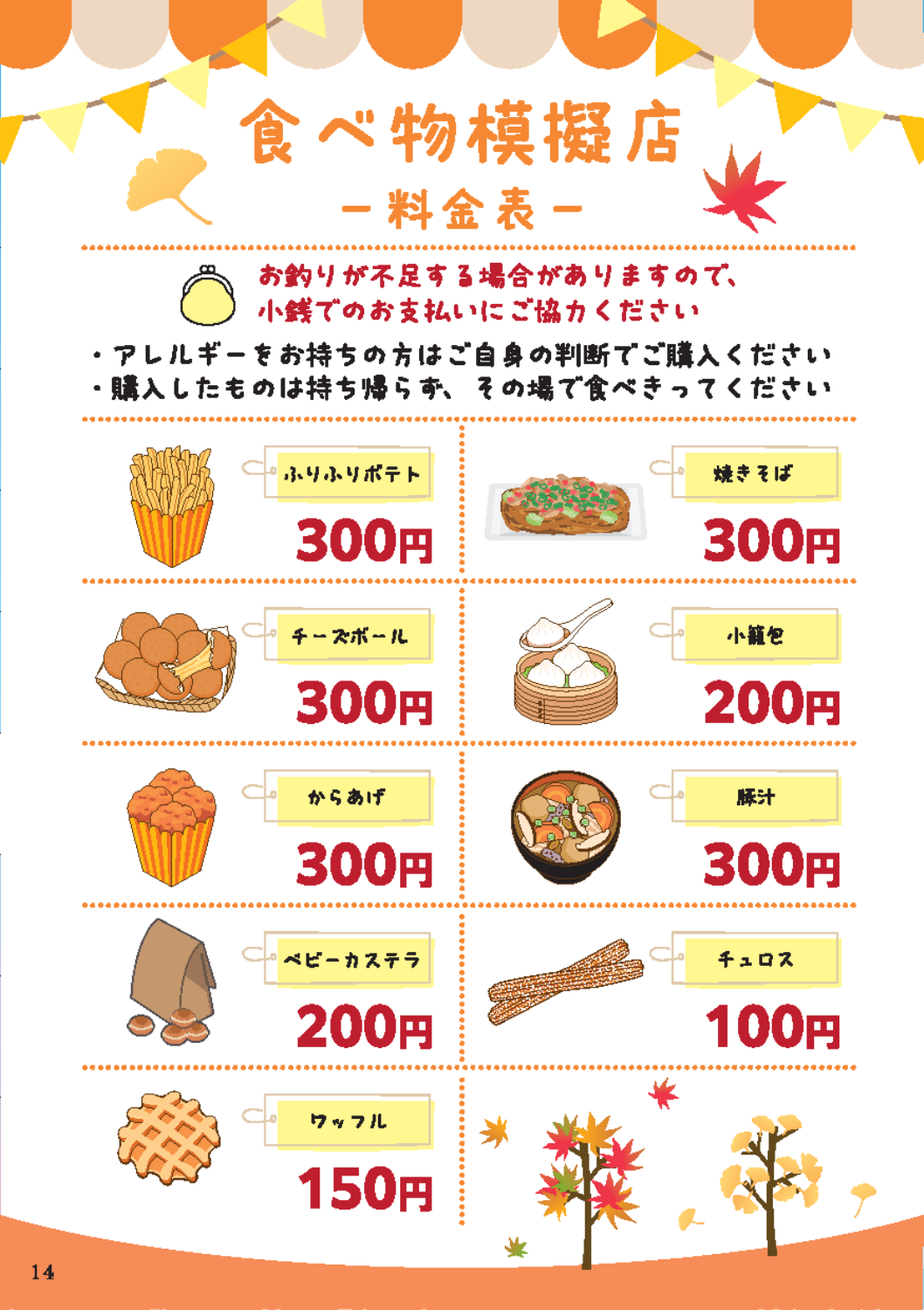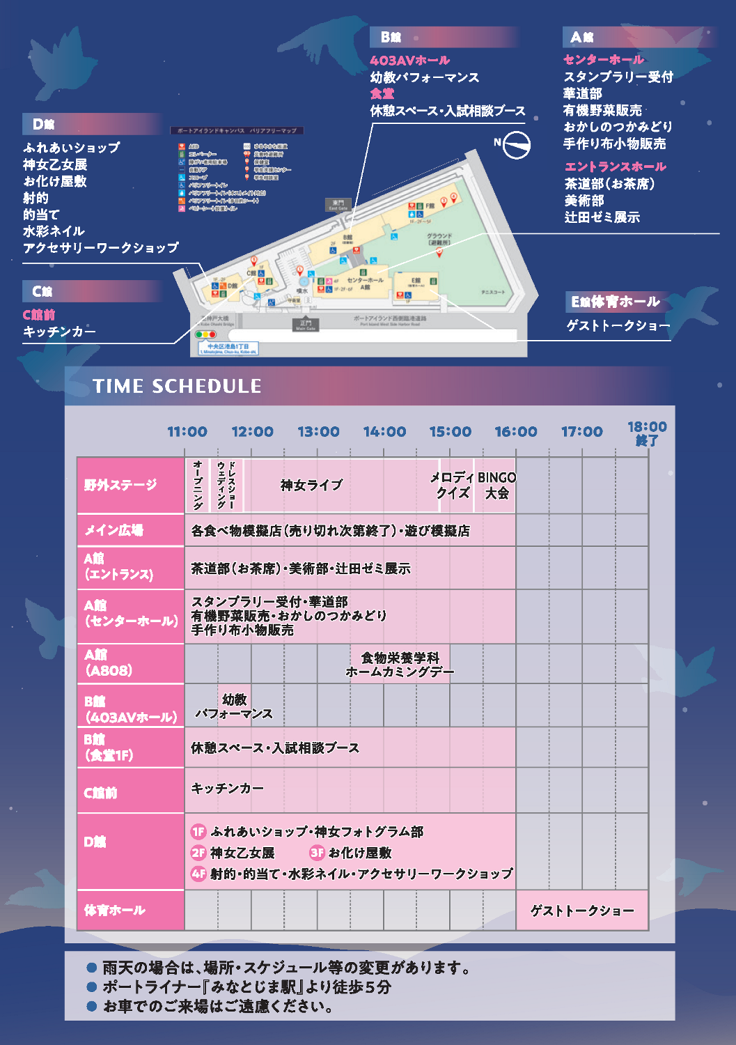 • 当日は食べ物模擬店等がございます。アレルギーをお持ちの方は事前にご確認のうえご自身で責任を持って飲食いただきますようお願いします。