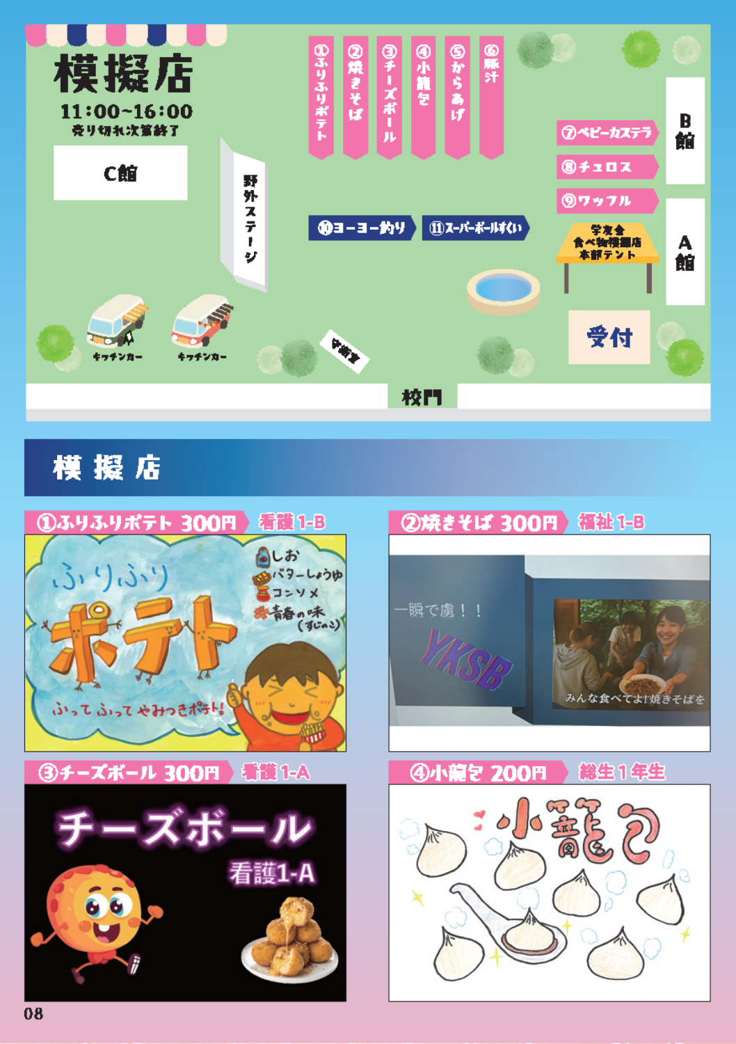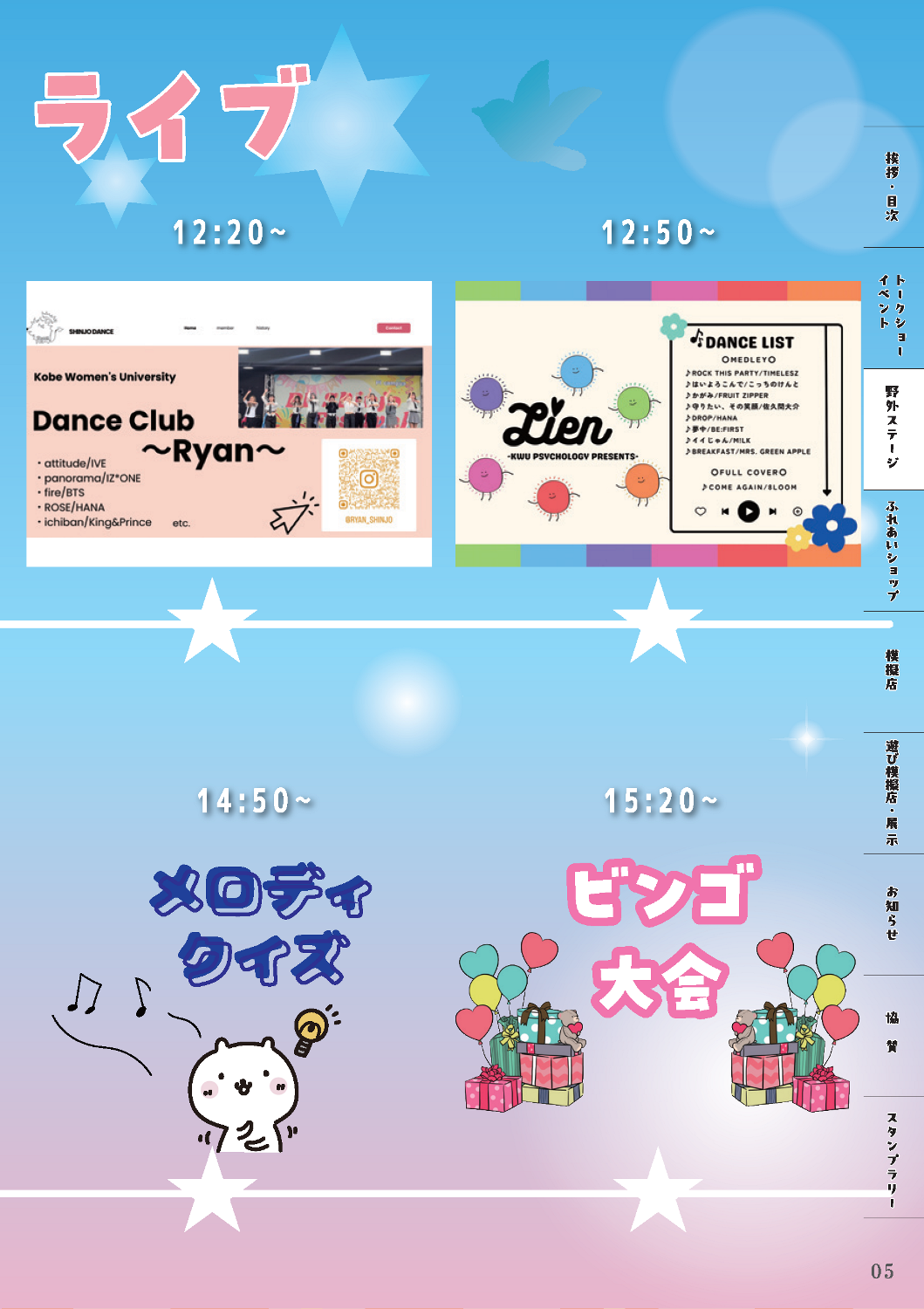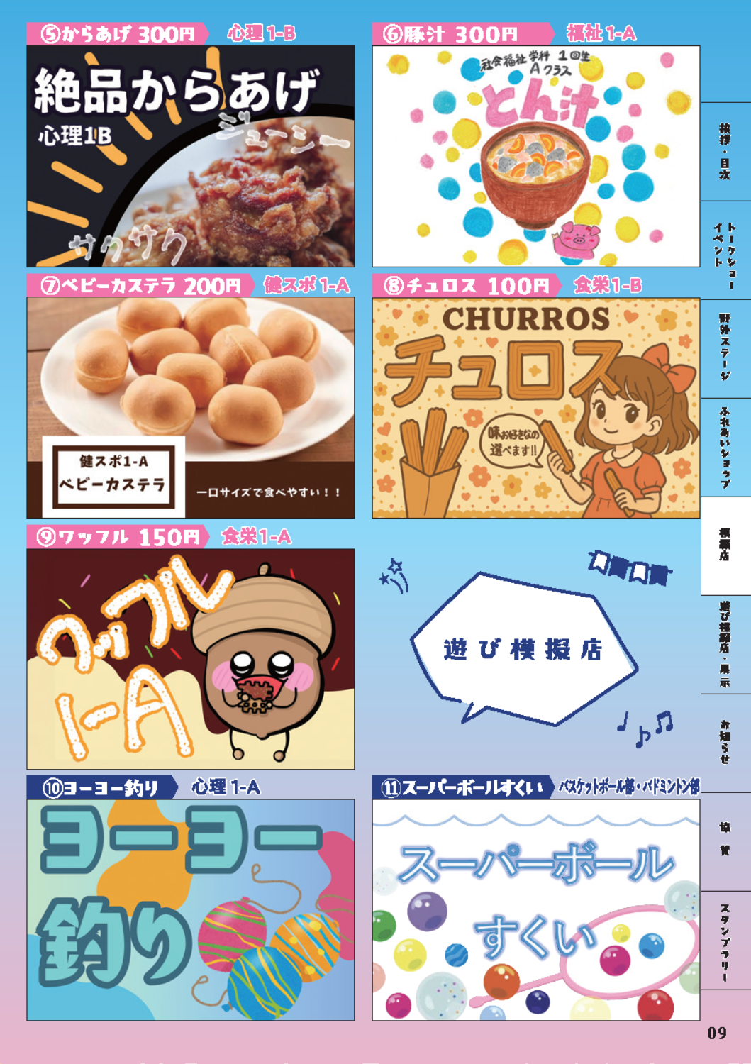 • 当日は食べ物模擬店等がございます。アレルギーをお持ちの方は事前にご確認のうえご自身で責任を持って飲食いただきますようお願いします。