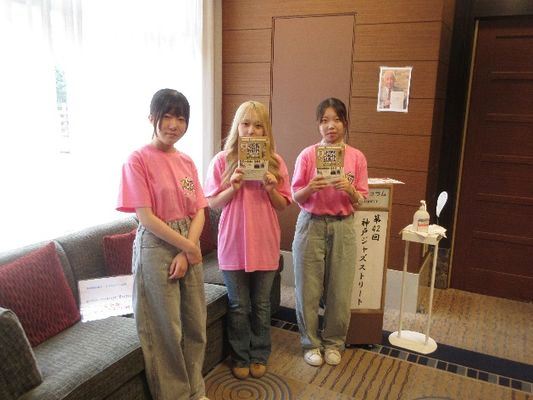 今年度は大学・短大から23名の学生が参加し、揃いのローズピンクのTシャツを着て、全国からのお客様をお迎えしました。
