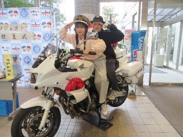 同時に、神戸水上警察署より防犯・交通安全に係る啓発活動と、白バイの車両展示が行われました。白バイに乗っての写真撮影体験もあり、参加者からは「貴重な体験ができて楽しかった」といった声が寄せられました。