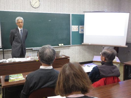 まず自己紹介と研究分野・著書の紹介があり、続いて配付されたレジュメに基づき、朝鮮工芸を高く評価し「朝鮮民族美術館」を設立した柳宗悦について、解説されました。川森先生は韓国の蔚山(ウルサン)大学校で3年間教鞭をとられた経験があり、日韓関係の実体験を交えながら開放感のある韓国の社会・文化について語られました。歴史愛好家の参加者が興味を持って聞き入る姿が印象的でした。