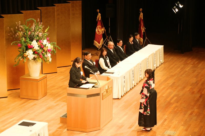 式典では、洪 愛子学長から卒業生代表に学位記が授与されたのち、式辞が送られました。