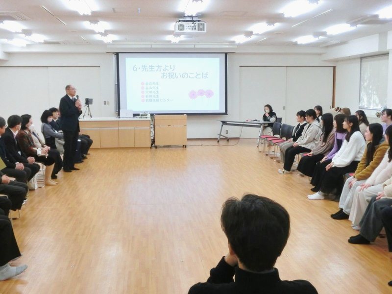 2025年11月25日(水)、公立学校、園の、教員、保育士を目指し日々頑張ってきた4回生の皆さんを労う「教保スタート激励会」を行いました。