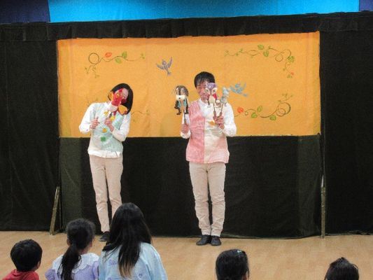 今年の人形劇は「〇・△・□~なにしてあそぼ~」と「赤いめんどり」の2演目です。