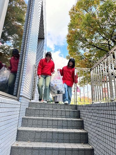 天気も良く、「大学の周りにこんなところあるの知らなかった~」とか、「タバコのポイ捨てないわ~」とか、わきあいあいお話ししながら、みんなで一生懸命清掃活動を行いました。