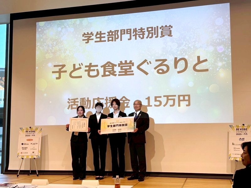 12月6日(土)に、社会福祉学科の学生が立ち上げた学生団体である子ども食堂「ぐるりと。」がBEKOBEミライセッションにおいて「学生部門特別賞」を受賞しました。