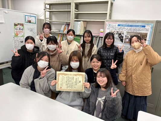 「災害時の食支援研究でフロンティア賞を受賞した研究室の学生たち」