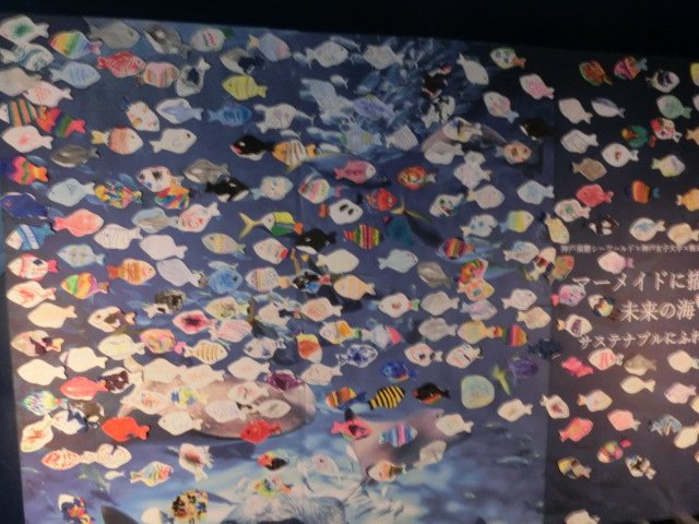 その他にも、魚の型に子供たちが色づけや考えた魚を作成し、神戸須磨シーワールドの型が準備してくださった水中風景を撮影したパネルに貼り、一緒に記念撮影をして楽しいひとときを過ごしました。