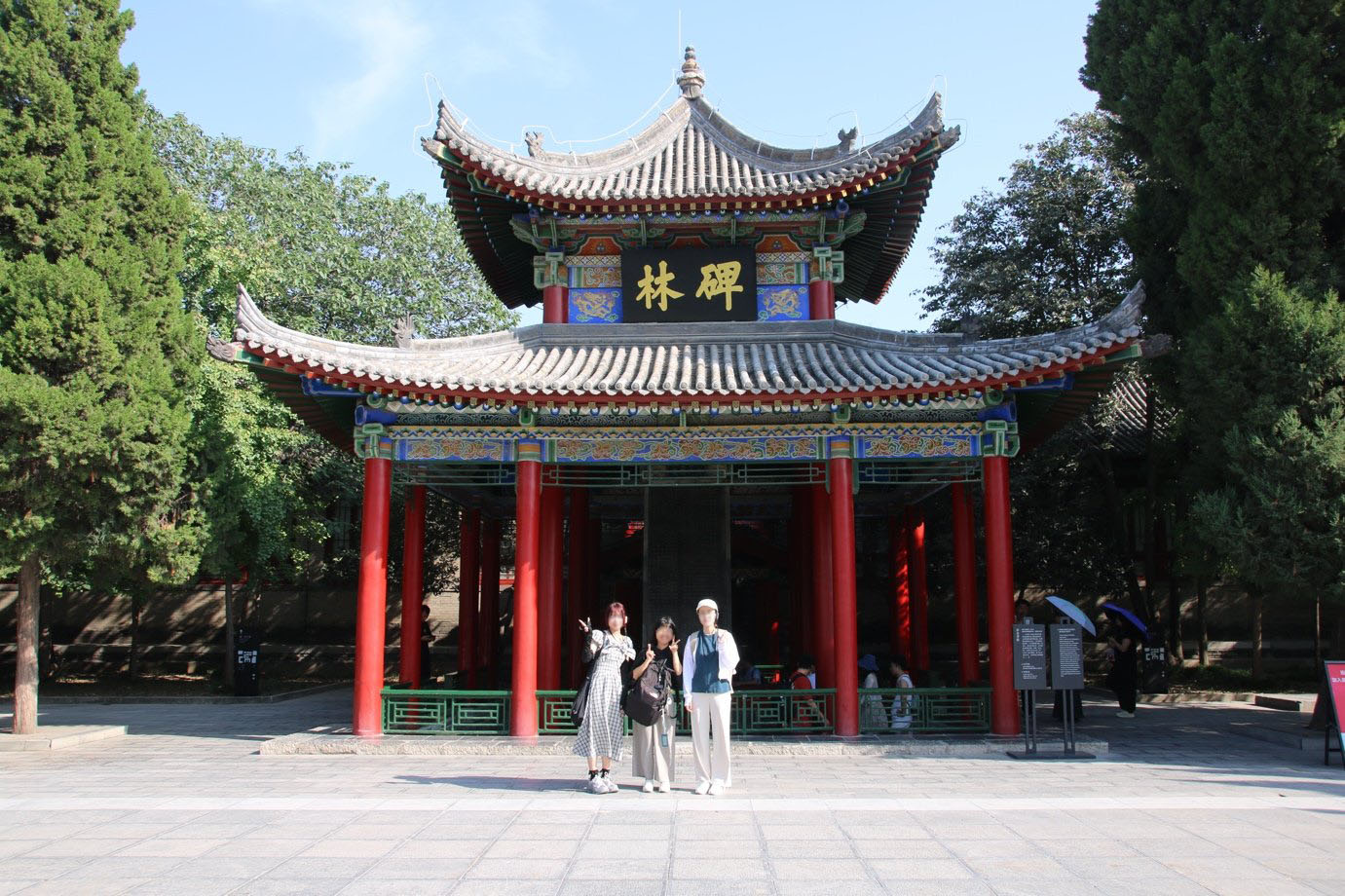 今回は4日間かけて、個別に世界遺産になっている秦の始皇帝陵しこうていりょう兵馬俑坑へいばようこう臨潼区りんどうく)、玄奘三蔵げんじょうさんぞう訳経やっきょうを見守った大雁塔だいがんとう雁塔区がんとうく)、とう則天武后そくてんぶこうが眠る乾陵けんりょう咸陽市かんようし乾県けんけん)、歴代の名筆工芸品が収蔵された西安碑林せいあんひりん碑林区ひりんく)、新石器時代の集落遺跡である半坡遺跡はんばいせき灞橋区はきょうく)などを訪問し、数多くの歴史の現場や貴重な文化遺産を巡見できました。初めての海外渡航になる学生もいましたが、偶然に現地で出会った東京女子大学の歴史文化専攻の学生と一緒に観光客で賑わう古都の空気を楽しむことができたようです。
