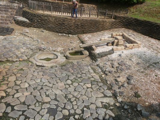 酒船石次に飛鳥京跡を見学しました。同遺跡は、7世紀中後期の宮跡です。下層は飛鳥岡本宮、中層は飛鳥板蓋宮、上層は後飛鳥岡本宮の遺跡と考えられています。現在は、井戸の跡を中心においた公園になっています。