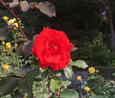 今回も潮見台から和室までを散策し、ノルディックウォーキングを楽しむ市民サークルの皆さんにも楽しんでいただけました。快晴に恵まれたため、特に王侯貴族のバラ園で咲き誇る秋バラの香りが素晴らしかったと思います。また光源氏の過ちやポセイドン像の解説に興味を持っていただけたのは幸いでした。
