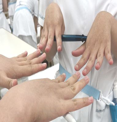 慣れない環境に緊張する様子も見られましたが、日を追うごとに表情が柔らかくなり、主体的に実習へ取り組む姿に変わってきました。「看護師としてケアを提供するだけでなく、患者さんの生活や心に寄り添う存在でありたい」と目指す看護師像を描くきっかけとなりました。1週間の短い期間でひと回り成長しました。