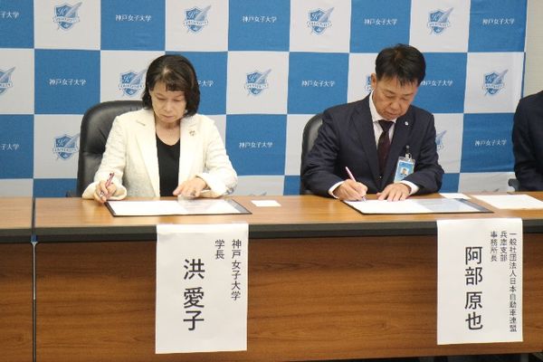 神戸女子大学と一般社団法人日本自動車連盟(JAF)兵庫支部は、地域社会における課題のひとつである交通事故を減らすことを目的に交通安全教育の企画・運営・啓発活動に参加するなど、地域の中での社会貢献活動について連携・協力に関する協定書を締結しました。